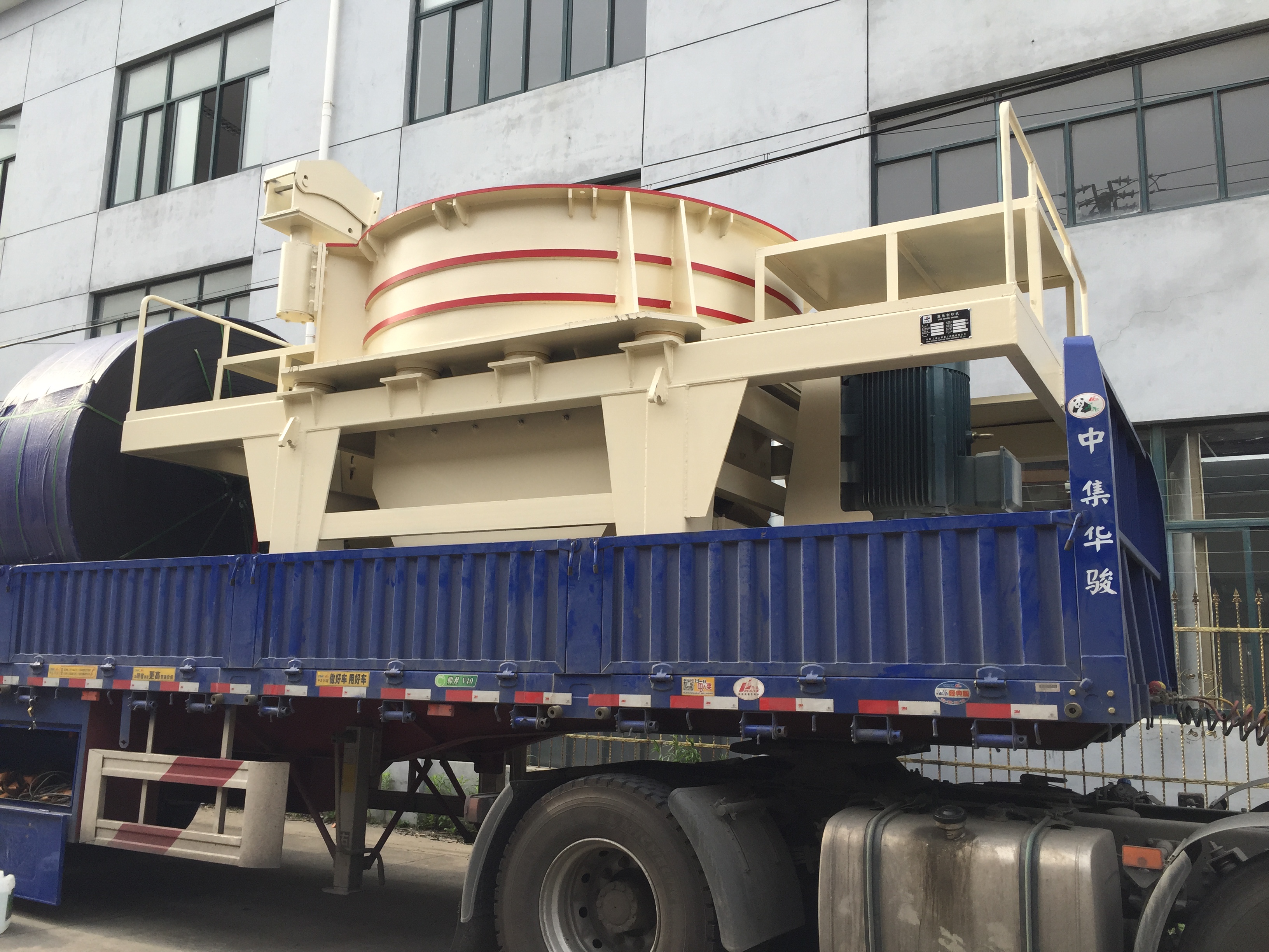 昨日我公司正式發往甘肅蘭州一臺VSI1210高效制砂機。此設備是在多年研制、開發、生產礦山機械的基礎上,吸取國內外同類產品的先進技術開發的具有國際先進水平的新一代節能、高效破碎機,其性能在各種礦石細碎設備中起著不可替代的作用。高效制砂機設備可廣泛應用于金屬和非金屬礦石、建筑材料、人工造砂以及各種冶金礦渣的破碎與整形。本機適用于莫氏硬度小于9級的脆性物料,不適用于粘性物料以及含泥土較多的石料。以下為裝車發貨現場: